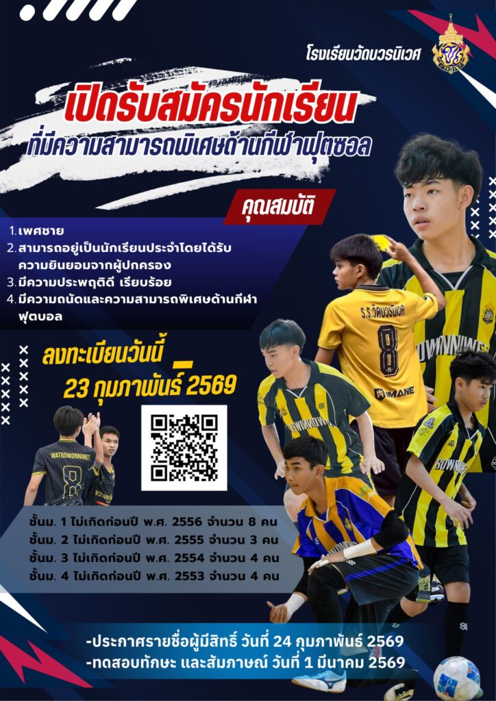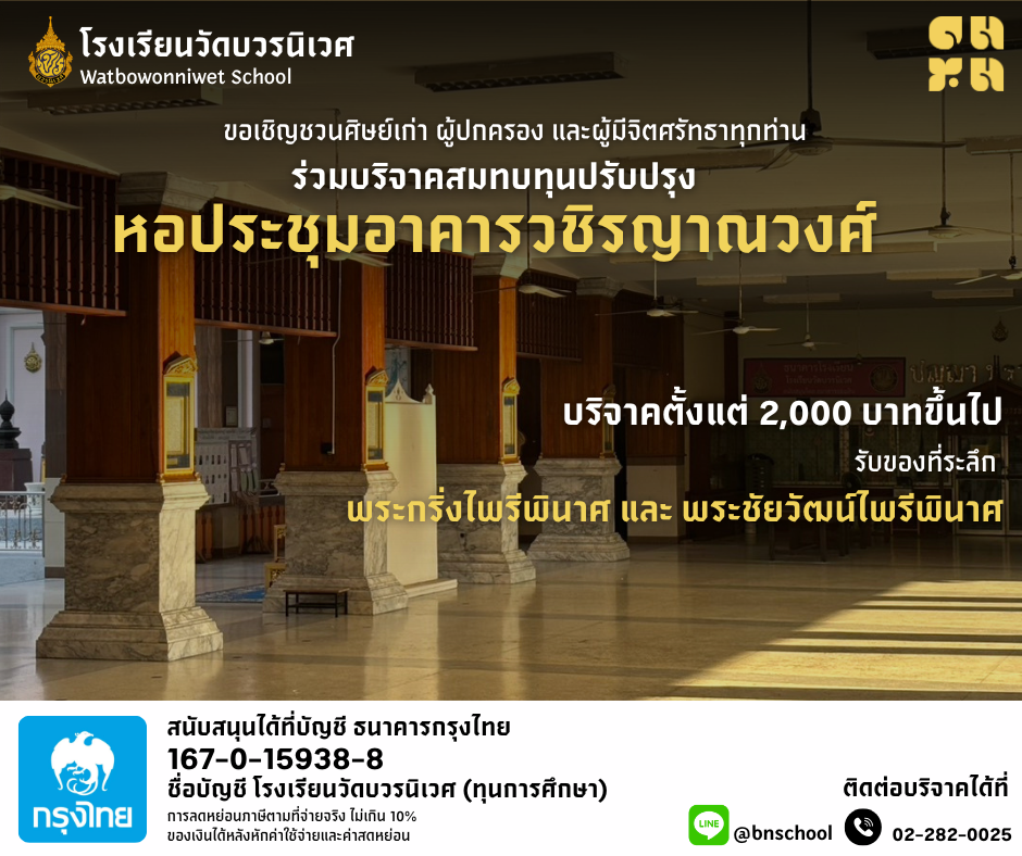 โรงเรียนวัดบวรนิเวศ ขอเชิญชวนร่วมสนับสนุนทุนการศึกษา ปีการศึกษา 2569