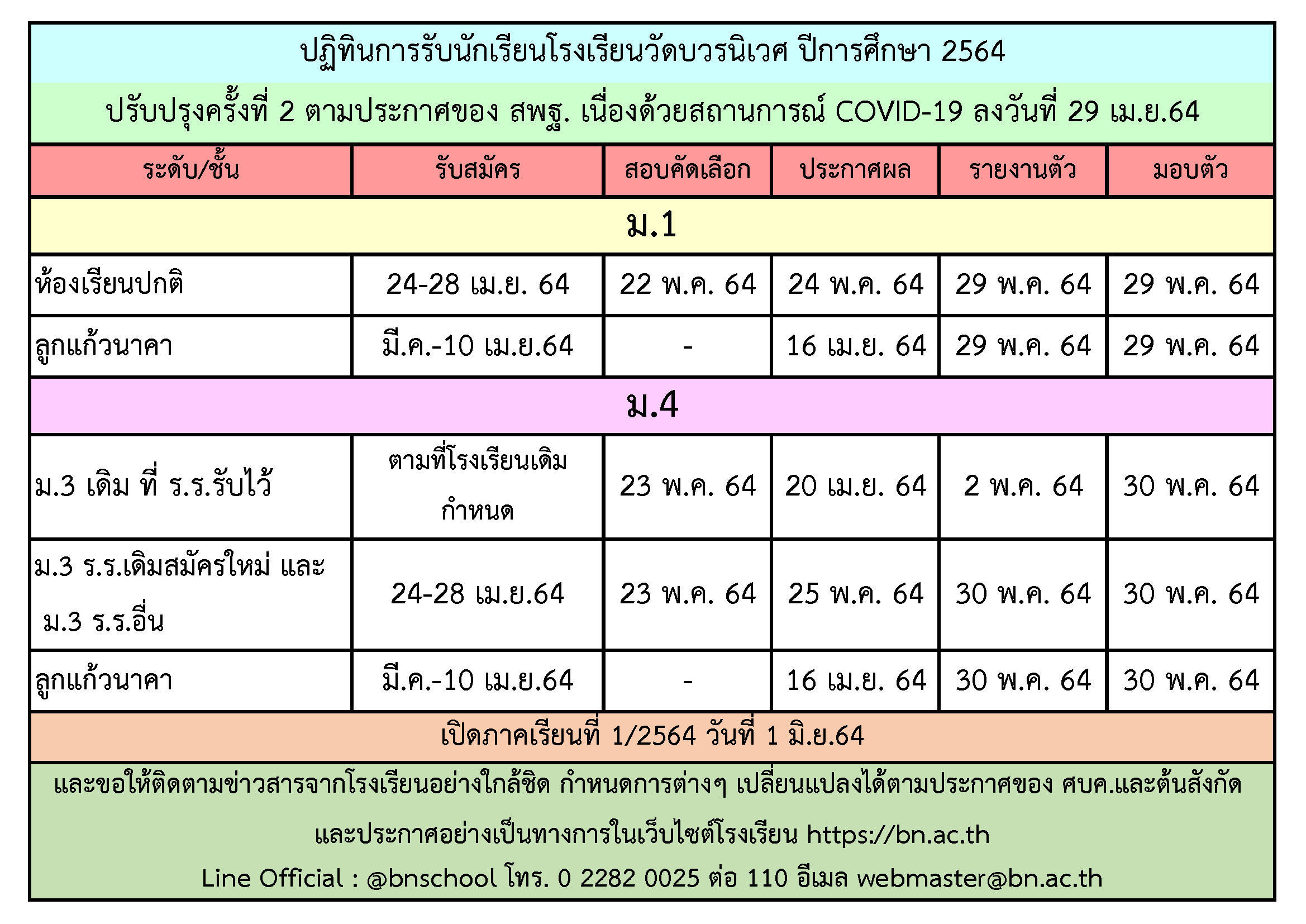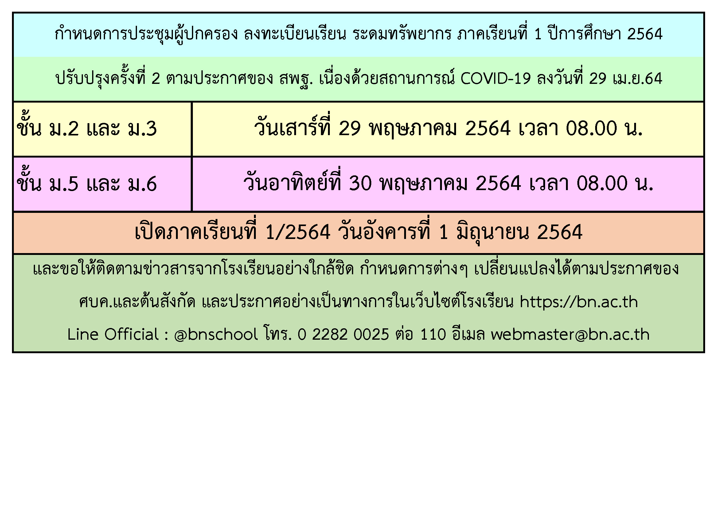 กำหนดการมอบตัว ประชุมผู้ปกครอง ลงทะเบียน และระดมทรัพยากร ภาคเรียนที่ 1/2564 ปรับปรุงครั้งที่ 2 Posted on06/05/2564 10:32 น. ข่าวประชาสัมพันธ์ Post Views: 569