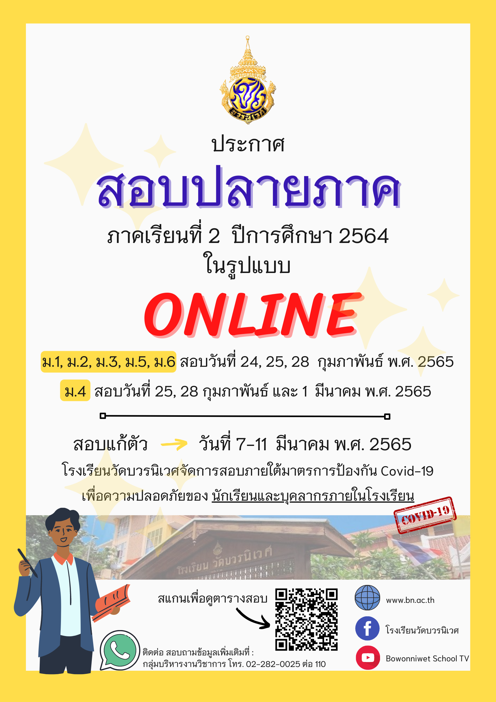 กำหนดการสอบปลายภาคเรียนที่ 2/2564 Posted on20/02/2565 12:51 น. ข่าวประชาสัมพันธ์ ดาวน์โหลดตารางสอบ Post Views: 849