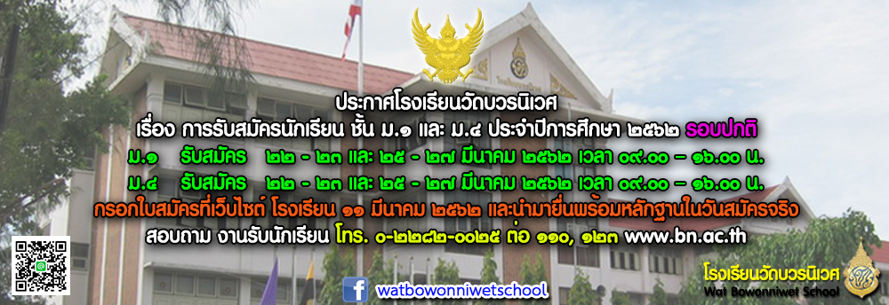 การรับสมัครนักเรียน ปีการศึกษา 2562
