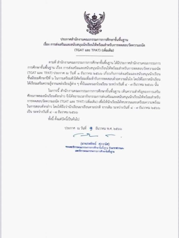 ประกาศ หยุดเรียน นักเรียน ม.6 เพื่อเตรียมความพร้อมสอบ TGAT TPAT (6-8 ธ.ค.66) Posted on04/12/2566 12:01 น. ข่าวประชาสัมพันธ์ ดาวน์โหลดประกาศ2566-05-04_tgat_tpat_m6 Post Views: 577