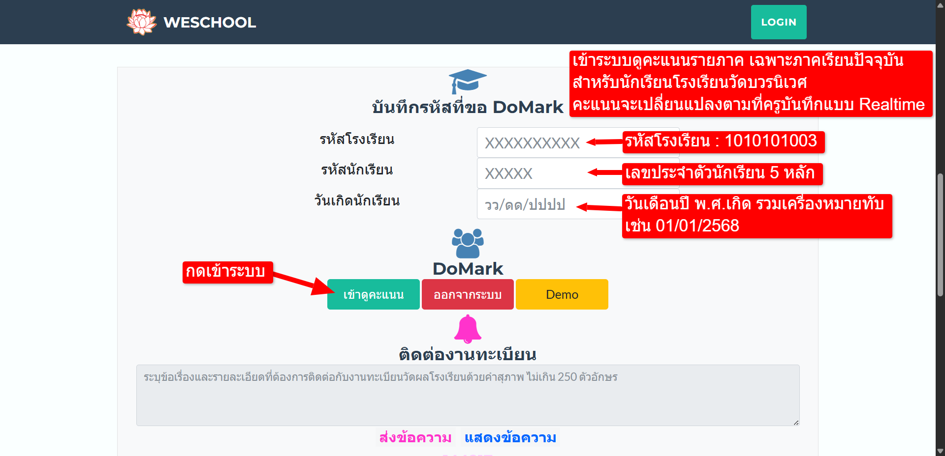 ประกาศผลสอบกลางภาคเรียนที่ 1 ปีการศึกษา 2568 Posted on26/08/2568 10:25 น. ข่าวประชาสัมพันธ์ Server 1 : ประกาศผลสอบกลางภาคเรียนที่ 1 ปีการศึกษา 2568 (Realtime) กรอกรหัสโรงเรียน 1010101003 Server 2 : ประกาศผลสอบกลางภาคเรียนที่ 1 ปีการศึกษา 2568 (Realtime) กรอกรหัสโรงเรียน 1010101003 App Studentcare ประกาศคะแนนรวมหน่วย 50 คะแนนแรก Server 3 : ประกาศคะแนนรวมหน่วย 50 คะแนนแรก (1 ก.ย.68) Post Views: 139