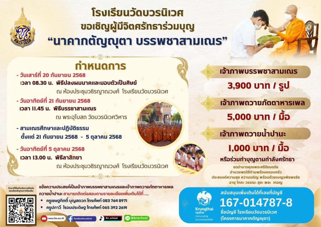 ✨ ขอเชิญผู้มีจิตศรัทธาร่วมเป็นเจ้าภาพบรรพชาสามเณร ในโครงการ “นาคากตัญญุตา บรรพชาสามเณร ประจำปี 2568 ✨