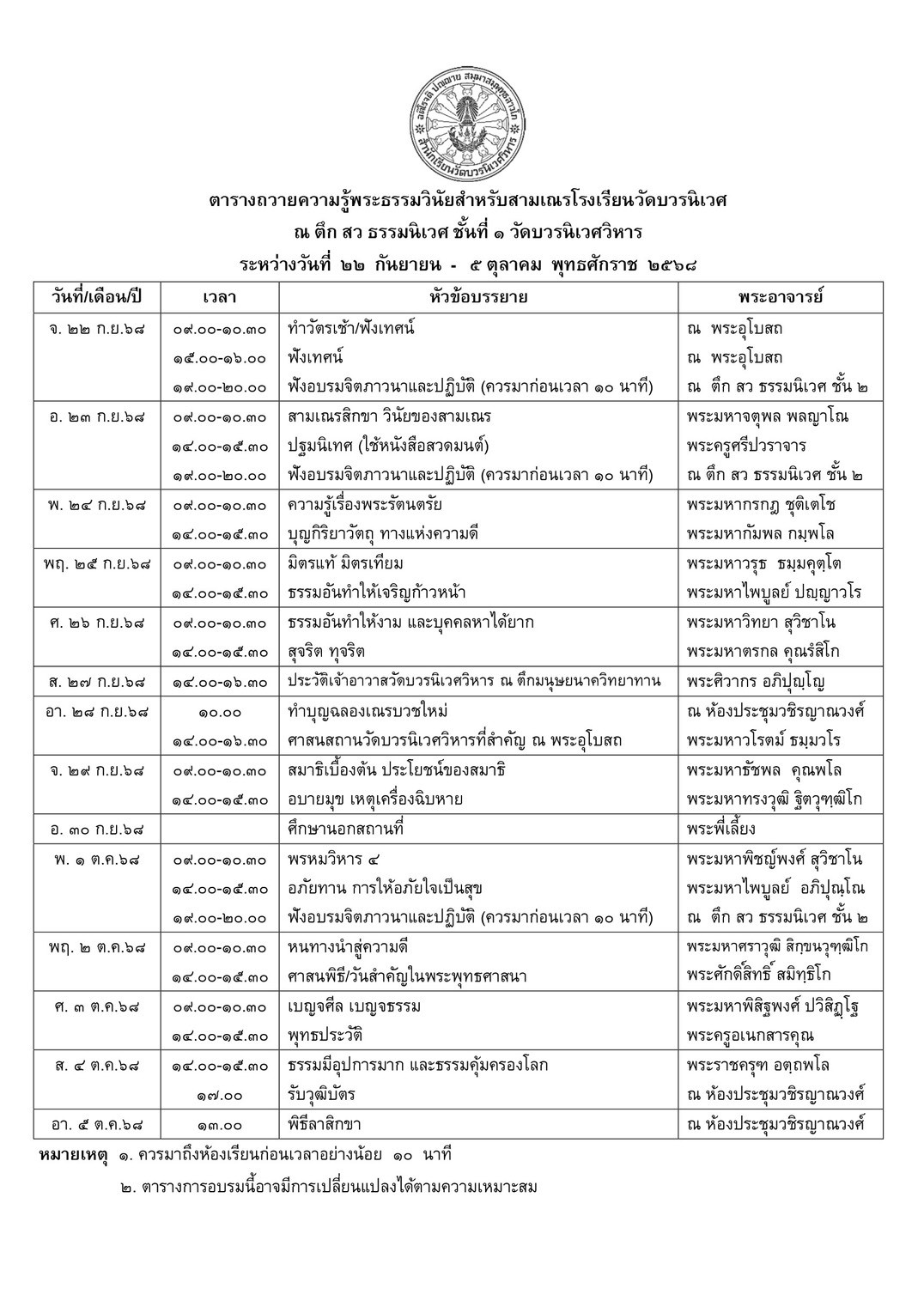 ตารางถวายความรู้สามเณรโครงการนาคากตัญญุตา (22 ก.ย.-5 ต.ค.68) Posted on21/09/2568 20:08 น. ข่าวประชาสัมพันธ์ Post Views: 72