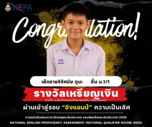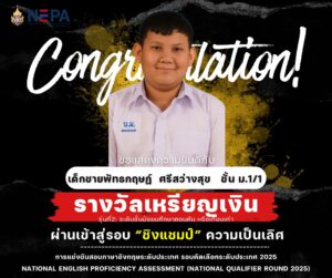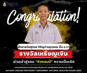 ลูกนาคา ได้รับรางวัลการแข่งขันสอบภาษาอังกฤษระดับประเทศ รอบคัดเลือก ระดับประเทศ 2025 National English Proficiency Assessment (National Qualifier Round 2025)