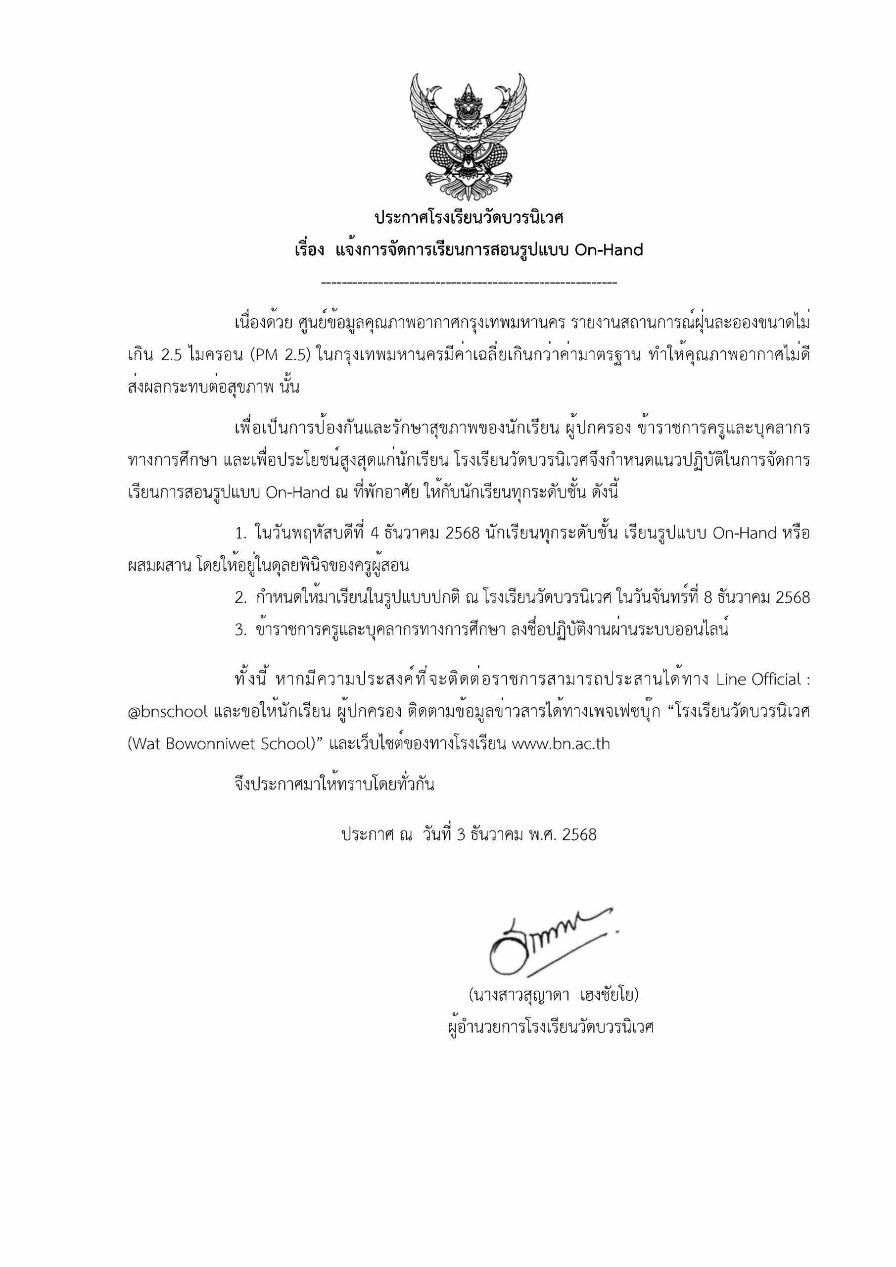ประกาศปิดสถานศึกษาด้วยเหตุพิเศษ (PM.2.5) 4 ธ.ค.68 Posted on03/12/2568 14:55 น. ข่าวประชาสัมพันธ์ ประกาศปิดสถานศึกษาด้วยเหตุพิเศษ (PM.2.5) 4 ธ.ค.682568-12-03_annouce_pm25 Post Views: 119