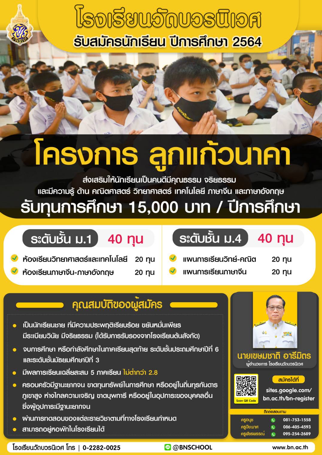 เปิดรับสมัครนักเรียน ม.1 ม.4 ปีการศึกษา 2564 โครงการลูกแก้วนาคา Posted on27/01/2564 12:41 น. ข่าวประชาสัมพันธ์ ศึกษารายละเอียด และสมัครได้ที่ https://sites.google.com/bn.ac.th/bn-register/ Post Views: 1,258